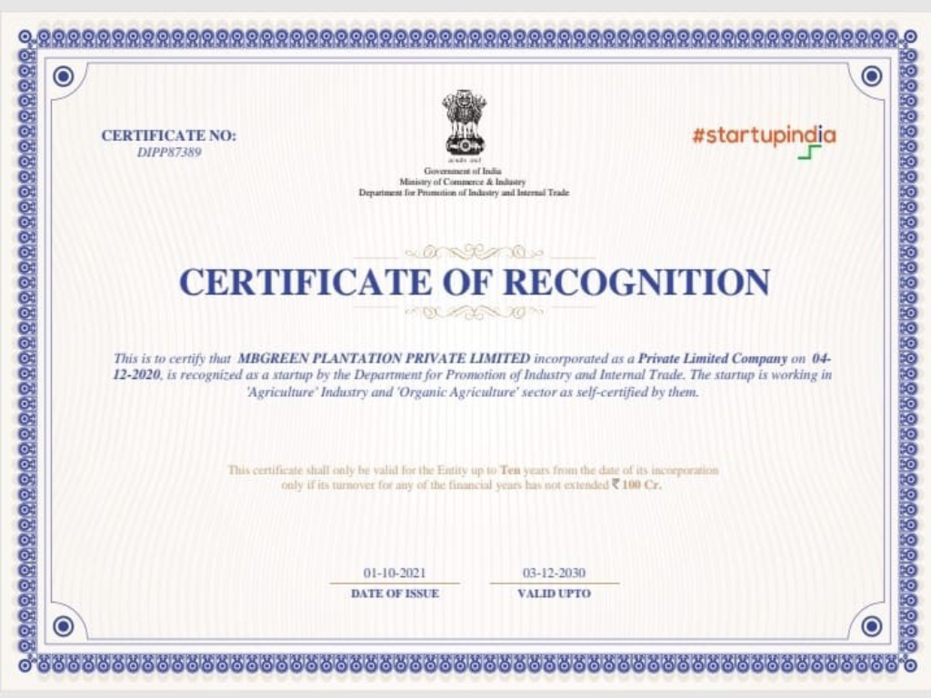 Government has certified MBGPPL under Startup India